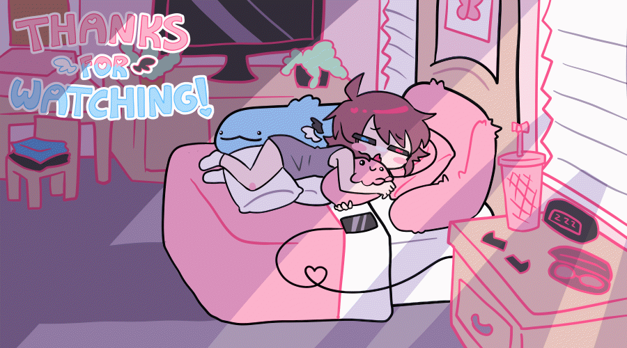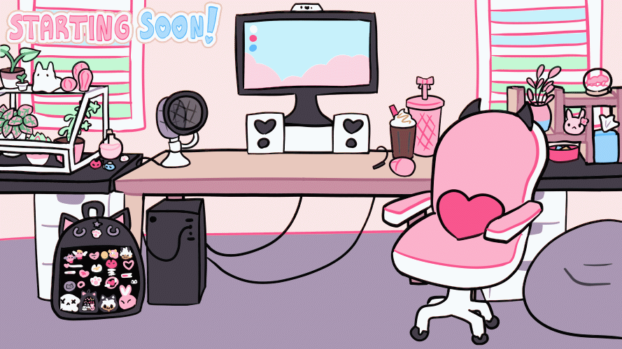 Unlike my animated videos, these are short animations and don’t have specific audio or stories to go with them. Some of them are intended as my own stream assets, and all include my own original characters.